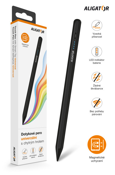 Aligator dotykové pero pro iPad s chytrým hrotem, černé Pracujte s dotykovým perem Aligator jako s klasickou tužkou. Díky přirozené odezvě, citlivosti chytrého hrotu na přítlak i náklon je Aligator dotykové pero naprosto nepostradatelným parťákem. Práce na Vašem iPadu nebyla nikdy jednodušší!