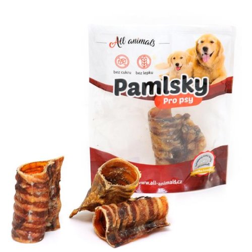 Sušený hovězí hrtan, je velmi zdravou a chutnou pochoutkou díky vysokému podílu přírodního kolagenu a elastinu. Tyto látky mají vysokou stravitelnost a využitelnost v organizmu psa. Jsou určeny především pro ochranu kloubních vazů a šlach. Významný podíl minerálů má zase pozitivní vliv na tvorbu i kvalitu kostí a zubů. 100 % přírodní surovina, bez jakékoliv další dochucovací úpravy. Dá se podávat psovi jako žvýkací hračka, nebo odměna, či pamlsek během dne. Určeno pro všechny druhy psů se zdravým chrupem. Složení: 100 % hovězí hrtan – krájený. Uchovávejte v temnu, suchu a chladu, nejlépe do 15 °C.