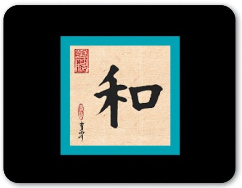 Černá s ústředním motivem vyobrazujícím čínský znak pro "Harmonii"