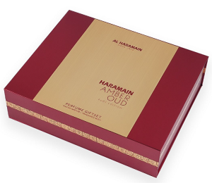Amber Oud Ruby Edition od Al Haramain je sofistikovaná dřevitě-květinová parfémová voda pro muže i ženy, která ztělesňuje eleganci a luxus drahocenných rubínů. Úvodní tóny hořké mandle se prolínají se šafránem a okamžitě vzbuzují pocit exkluzivity a rafinovanosti. V srdci vůně se rozvíjí jemné okvětní lístky egyptského jasmínu spojené s teplými dřevitými akordy cedru, které dodávají kompozici hloubku a harmonii. Základ tvoří smyslná kombinace pižma, ambry a dřevitých tónů, jež zanechává dlouhotrvající, hřejivou stopu, ideální i pro chladnější dny. Amber Oud Ruby Edition je volbou pro ty, kteří hledají parfém, jež vyzařuje luxus, sebevědomí a nadčasovou eleganci. Vůně byla uvedena na trh v roce 2022. Součástí sady je: