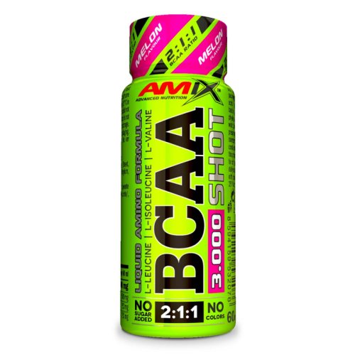 BCAA 3000 SHOT je doplněk stravy v tekuté formě v kapesním balení s obsahem esenciálních aminokyselin s rozvětveným řetězcem BCAA v poměru 2:1:1.