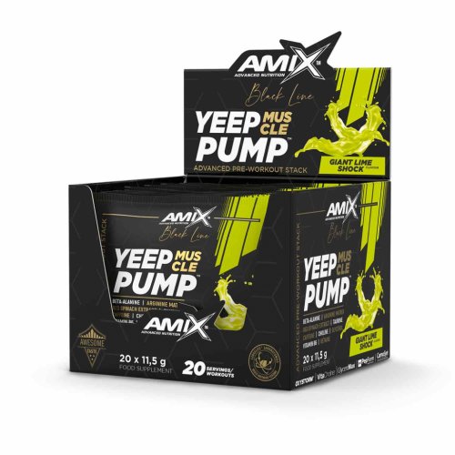 ! Obsahuje kofein, není vhodné pro děti a těhotné ženy. Denní dávka (11,5 g) obsahuje 200 mg kofeinu. Produkt není vhodný pro osoby trpící přecitlivělostí na kofein. Yeep Pump je revoluční super koncentrovaný předtréninkový doplněk určený pro nejnáročnější sportovce, aby posunuli své intenzivní tréninky na další úroveň. Tento osvěžující a chutný nápoj je založen na dávce 3 g CarnoSyn® beta-alaninu s obsahem argininového komplexu,Taurinu, L-Lysinu, glycerinu GlyceroMax™, VitaCholine®, extraktu z červeného špenátu Oxystorm® a Betainu. Vitamin B6 pomáhá snižovat únavu a vyčerpání, zatímco kofein přispívá ke zvýšení odolnosti, pomáhá zlepšit koncentraci a bdělost. Doporučené dávkování: