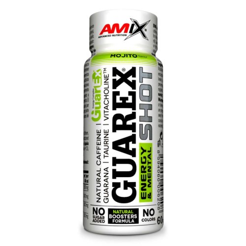 ! Obsahuje kofein, není vhodné pro děti a těhotné ženy. Denní dávka (1 ampule/60 ml) obsahuje 100 mg kofeinu. Produkt není vhodný pro osoby trpící přecitlivělostí na kofein. Guarex® Energy & Mental SHOT je excelentní dávka energie založená na vysokém obsahu extraktu z Guarany, VitaCholine®, Taurinu a suroviny ActiveTR™, neboli přírodního enkapsulovaného kofeinu. Doporučené dávkování: