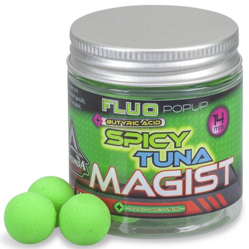 Vizuálně výrazné plovoucí nástrahy s atraktivní příchutí – zcela nové Anaconda Magist Fluo Pop Ups. Plovoucí nástrahy jsou oslazeny neohesperidin dihydrochalkonem a uhlazené kyselinou N'Bytricovou. Od ovocných přes sladké až po rybí – rozmanitost příchutí této řady je až neuvěřitelná. Použití Fluo barev způsobuje, že tato nástraha je neskutečně dobře vidět v čisté i zakalené vodě. Díky jejich široké škále najdete vždy tu správnou nástrahu, ať už chytáte hluboko nebo na mělčině, v zakalené nebo čisté vodě, v řece nebo na přehradě. Ať už kuličku nastražíte na chod návazce, jako druhou kuličku na panáčka nebo jako nástrahu při lovu se zig návazcem, můžete se vždy spolehnout na její skvělé vlastnosti.
