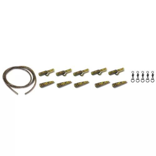 Tahle sada je hotové řešení pro většinu montáží s pevným olovem. Safety Lead Clip spolehlivě drží olovo při nahození i při zdolávání, ale v případě utržení nebo v překážkách umožní rybě rychle se olova zbavit. Obratlík Anaconda Camou Flex Ring Swivel s volným flex kroužkem zlepšuje pohyblivost návazce a pomáhá omezit zamotání montáže. Součástí je i PVC Anti Tangle Tube, která chrání vlasec a drží sestavu čistě u dna.