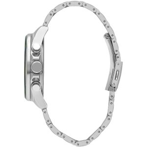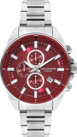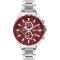 Pánské náramkové hodinky Napájení z baterie Průměr pouzdra 45,0 mm Pouzdro ve tvaru kruhu Kovové pouzdro Stříbrná barva pouzdra Kovový tah Stříbrná barva tahu Ručičkový ciferník Červená barva ciferníku Ciferník s dvanácti indexy Materiál skla - minerální sklo Odolné proti vodě při běžném nošení