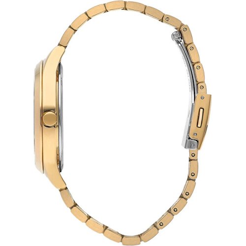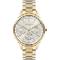 Dámské náramkové hodinky Napájení z baterie Průměr pouzdra 38,0 mm Pouzdro ve tvaru kruhu Kovové pouzdro Zlatavá barva pouzdra Kovový tah Zlatavá barva tahu Ručičkový ciferník Stříbrná barva ciferníku Ciferník s dvanácti indexy Materiál skla - minerální sklo Odolné proti vodě při běžném nošení