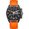 Pánské náramkové hodinky Napájení z baterie Průměr pouzdra 44,0 mm Pouzdro ve tvaru kruhu Kovové pouzdro Šedá barva pouzdra Oranžová barva tahu Ručičkový ciferník Šedá barva ciferníku Ciferník s dvanácti indexy Materiál skla - minerální sklo Odolné proti vodě při běžném nošení