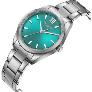 Dámské náramkové hodinky Napájení z baterie Průměr pouzdra 41,0 mm Pouzdro ve tvaru kruhu Kovové pouzdro Stříbrná barva pouzdra Kovový tah Stříbrná barva tahu Ručičkový ciferník SVETLO MODRÁ barva ciferníku Ciferník s dvanácti indexy Materiál skla - minerální sklo Odolné proti vodě při běžném nošení