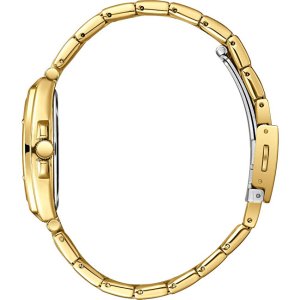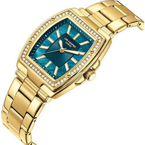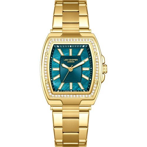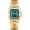 Dámské náramkové hodinky Napájení z baterie Průměr pouzdra 30,0 mm Pouzdro ve tvaru obdelníku Kovové pouzdro Zlatavá barva pouzdra Kovový tah Zlatavá barva tahu Ručičkový ciferník Zelená barva ciferníku Ciferník s dvanácti indexy Materiál skla - minerální sklo Odolné proti vodě při běžném nošení