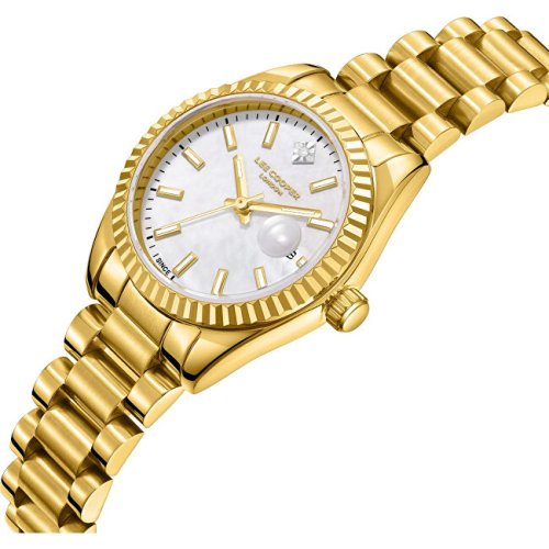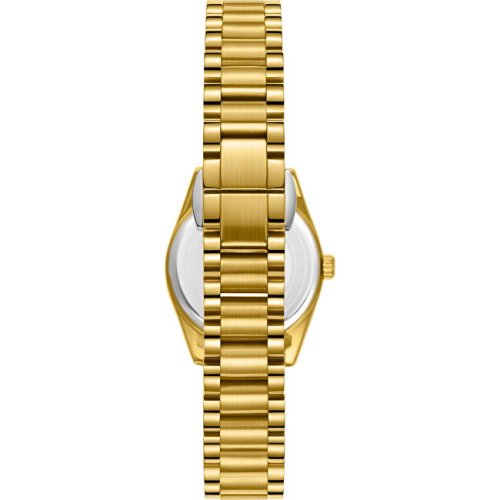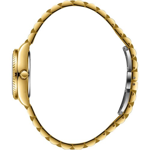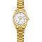 Dámské náramkové hodinky Napájení z baterie Pouzdro ve tvaru kruhu Kovové pouzdro Zlatavá barva pouzdra Kovový tah Zlatavá barva tahu Ručičkový ciferník Materiál skla - minerální sklo Odolné proti vodě při běžném nošení