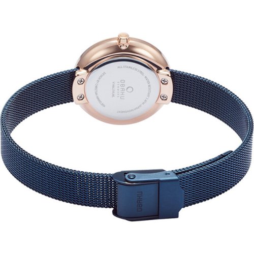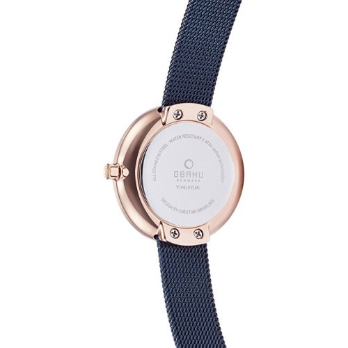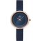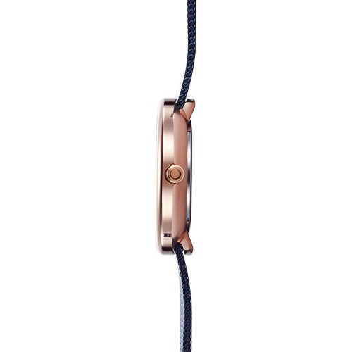 Dámské náramkové hodinky Napájení z baterie Průměr pouzdra 27,0 mm Pouzdro ve tvaru kruhu Ocelové pouzdro Růžové zlato barva pouzdra Ocelový tah Růžové zlato barva tahu Ručičkový ciferník TMAVO MODRÁ barva ciferníku Ciferník s dvanácti indexy Materiál skla - minerální sklo Odolné proti vodě při běžném nošení