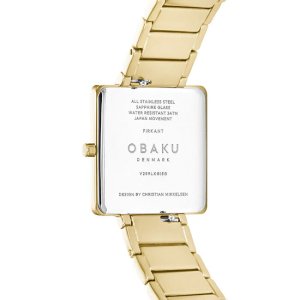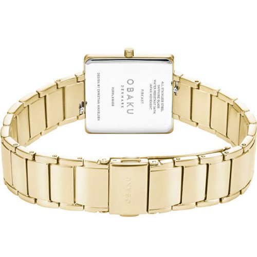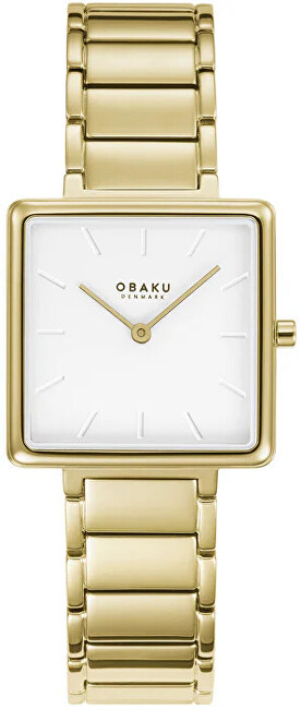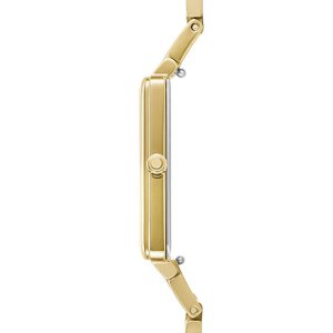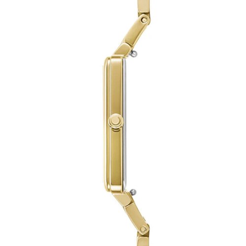 Dámské náramkové hodinky Napájení z baterie Průměr pouzdra 28,0 mm Pouzdro ve tvaru čtverce Ocelové pouzdro Zlatavá barva pouzdra Ocelový tah Zlatavá barva tahu Ručičkový ciferník Bílá barva ciferníku Ciferník s dvanácti indexy Materiál skla - safírové sklo Odolné proti vodě při běžném nošení