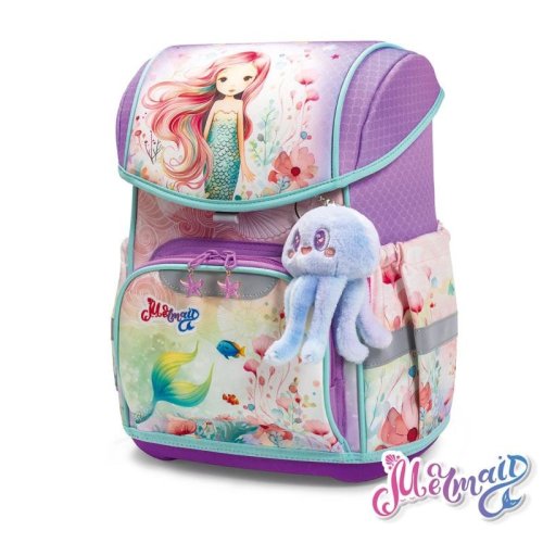 Anatomická školní aktovka MERMAID - mořská panna vyznačující se těmito top vlastnostmi: <br> • 3D ergonomický design zádového dílu aktovky pro správné rozložení hmotnosti s vysoce kvalitní síťovinou s měkkým polstrováním <br> • pevný tvar vyztužený po celé výšce, šířce a hloubce aktovky se zapínáním horní pevné klopy je na magnet s pojistným uzávěrem <br> • nastavitelné, ergonomicky tvarované ramenní popruhy a regulovatelný hrudní popruh s praktickým magnetickým zapínáním <br> • hlavní prostor s další úložnou přihrádkou zpevněný s gumou po bocích pro přizpůsobení se obsahu, vhodný do formátu A4 <br> • zpevněné plastové dno s nožičkami proti oděru <br> • polyesterová textilie nejvyšší kvality a kvalitní zipy <br> • reflexní bezpečnostní prvky vpředu, vzadu a na bocích <br> • rozšiřitelné boční kapsy s pevnou gumičkou po celé šíři kapsy <br> • přední kapsa na svačinu nebo na penál s izolační fólií zevnitř vnější kapsy, oboustranné zapínání na zip - na zipu přívěsek mořské hvězdice <br> • přívěsek na aktovce - plyšová fialovo-modrá chobotnice s kroužkem na klíče a karabinou <br> • rozvrh hodin a jmenovka uvnitř tašky <br> • hmotnost jen 1.250 g <br> • objem 25 litrů
