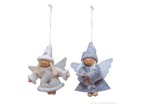 Anděl závěs pletený s knoflikem 110mm mix,bílá, šedá