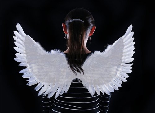 Překrásná křídla pro opravdové anděly se sněhově bílým peřím zdobené třpytkami! Tyto kouzelná křídla jsou na gumičku a stanou se tak skvělým doplňkem k tvému andělskému kostýmu! Velikost křídel po rozložení je cca 63 cm.