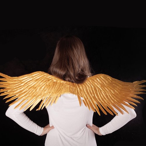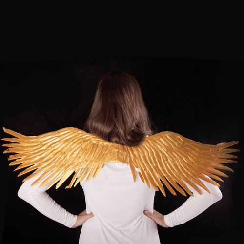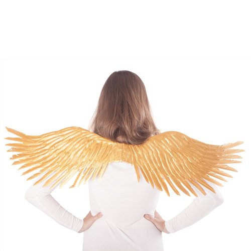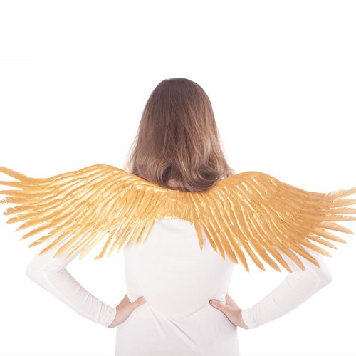 Překrásná křídla pro opravdové anděly ve zlaté barvě! Tento parádní kousek na gumičku je skvělým doplňkem k andělskému kostýmu. Velikost křídel po rozložení je cca 96 cm.