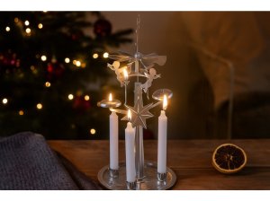 Klasické andělské zvonění přináší kouzlo Vánoc přímo k vám domů. Jakmile se svíčky zapálí, rozehrají se jemné tóny cinkajících zvonků – nostalgická připomínka dětství a klidných svátečních večerů. Elegantní stříbrný design se hodí do moderních i tradičních interiérů. Skvělý jako dárek i jako součást vánoční výzdoby.