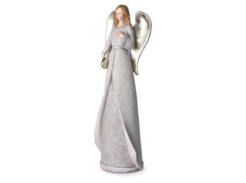 Tento něžný andílek je vyrobený z polyresinu a je zbarvený do béžové barvy se třpytkami. Jeho rozměry jsou 135x368mm, takže je ideální pro umístění na stůl, komodu nebo krbovou římsu. Andílek má jemné rysy a roztomilý výraz, který vnese do vašeho domova radost a optimismus.