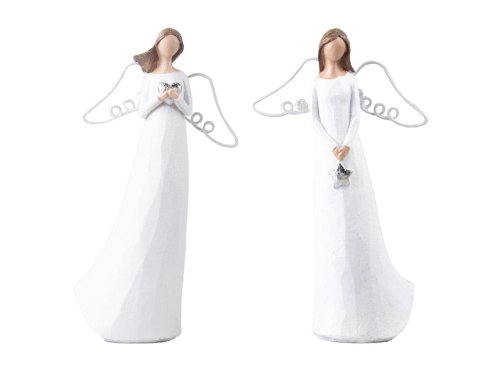 Tento andílek z polyresinu v bílé barvě se stříbrnými detaily vnese do vašeho interiéru nádech čistoty a klidu. Krásně se hodí na sváteční stůl, komodu nebo do okenního parapetu. Díky jemnému lesku stříbrných prvků působí andílek elegantně a decentně – ideální doplněk pro zimní i celoroční dekoraci. Zboží je dodáváno v mixu. Doručované zboží je vybíráno náhodně a nelze vybrat konkrétní provedení.