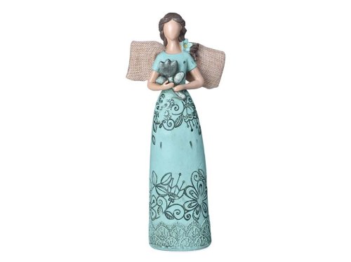 Tento jarně naladěný andílek nesoucí květinu je vyrobený z polyresinu, je zbarvený do světle modré barvy a má krásně zdobené šaty se vzorem květin. Andílek má rozměry 80x300mm a je opatřen jemnými detaily, které mu dodávají věrohodný vzhled. Můžete ho umístit na stůl, komodu nebo krbovou římsu, kde zaručeně upoutá pozornost a stane se ozdobou vašeho interiéru.