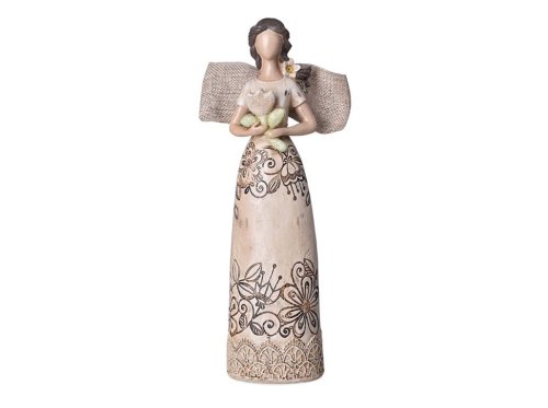 Tento jarně naladěný andílek nesoucí květinu je vyrobený z polyresinu, je zbarvený do přírodní barvy a má krásně zdobené šaty se vzorem květin. Andílek má rozměry 80x300mm a je opatřen jemnými detaily, které mu dodávají věrohodný vzhled. Můžete ho umístit na stůl, komodu nebo krbovou římsu, kde zaručeně upoutá pozornost a stane se ozdobou vašeho interiéru.