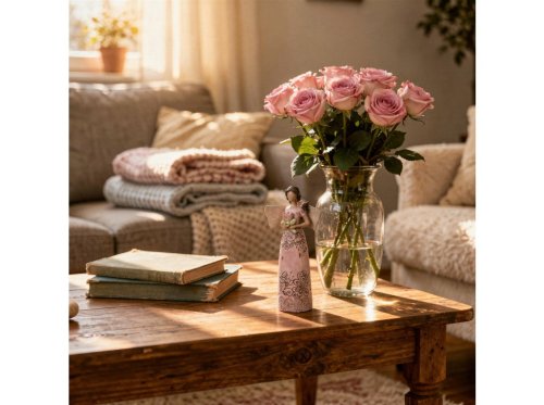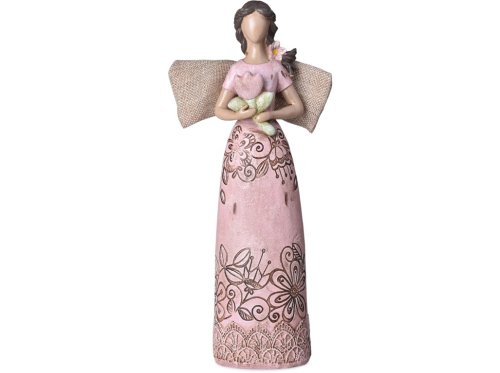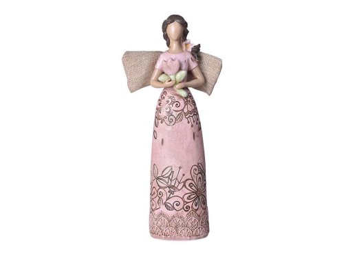 Tento jarně naladěný andílek nesoucí květinu je vyrobený z polyresinu, je zbarvený do růžové barvy a má krásně zdobené šaty se vzorem květin. Andílek má rozměry 80x300mm a je opatřen jemnými detaily, které mu dodávají věrohodný vzhled. Můžete ho umístit na stůl, komodu nebo krbovou římsu, kde zaručeně upoutá pozornost a stane se ozdobou vašeho interiéru.