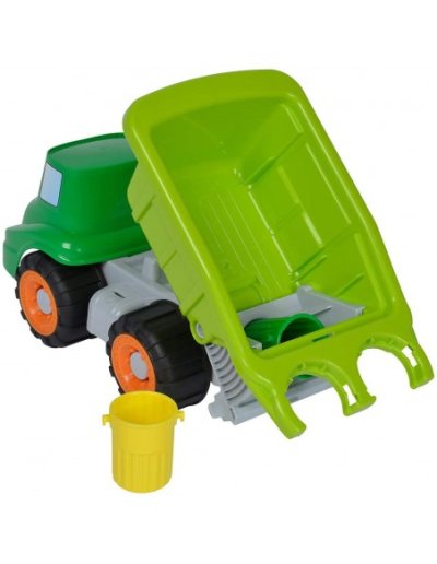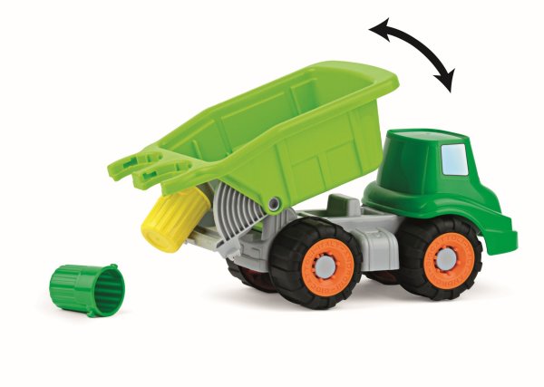 Auto ekopopeláři s roztomilým výrazem, pohyblivou korbou a dvěma popelnicemi. Vozidlo má pogumovaná kola, která zlepšují jeho jízní vlastnosti. Vyrobeno z kvalitních plastů v Itálii. Rozměry: 32 x 12,5 x 14,5 cm (d x š x v). Váha: 0,46 kg. Doporučený věk od 12 měsíců.