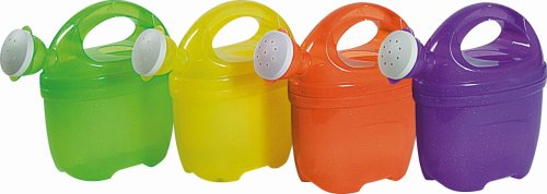 Průhledná konvička na vodu se třpytkami a s kropítkem ve tvaru kytičky. Vyrobeno z kvalitních plastů v Itálii. Objem: 1 litr. Doporučený věk od 12 měsíců.