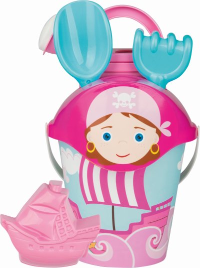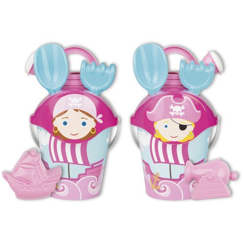 6dílná sada na písek, vyrobená z kvalitních plastů v Itálii. Obsahuje: Kyblík, konvičku 0,5 l, sítko, lopatku, hrabičky a tematické tvořítko. Kyblík: průměr 17 cm, výška 16 cm. Sada: výška 36 cm, váha 0,41 kg. Doporučený věk od 12 měsíců.
