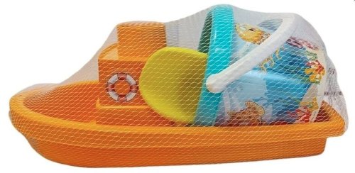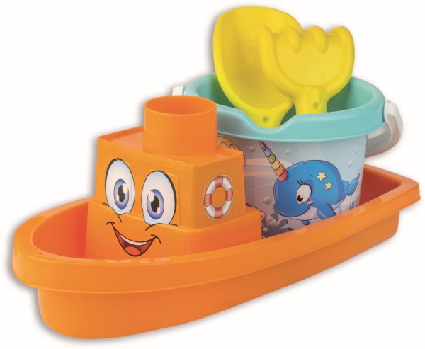 4dílná sada na písek s lodí, vyrobená z kvalitních plastů v Itálii. Obsahuje: Loďku, kyblík, lopatku a hrabičky. Loďka: délka 35 cm, šířka 16 cm. Kbelík: průměr 13 cm, výška 11 cm. Sada: 35 x 16 x 15 cm (d x š x v), váha 0,35 kg. Doporučený věk od 10 měsíců.