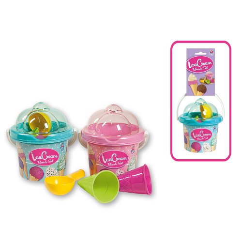 5dílná sada na písek, vyrobená z kvalitních plastů v Itálii. Obsahuje: Kyblík s víkem ve tvaru zmrzlinového poháru, kopečkovač na zmrzlinu a 2 zmrzlinové kornoutky. Kyblík: průměr 13 cm, výška 11 cm. Sada: výška 16 cm, váha 0,26 kg. Doporučený věk od 10 měsíců.
