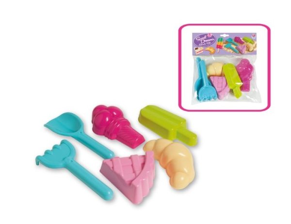 Sada Tvořítka na písek: Cukrárna děti zabaví. Mohou pomocí formiček vytvořit dortík, nanuk, kopečkovou zmrzlinu a jiné dobroty.