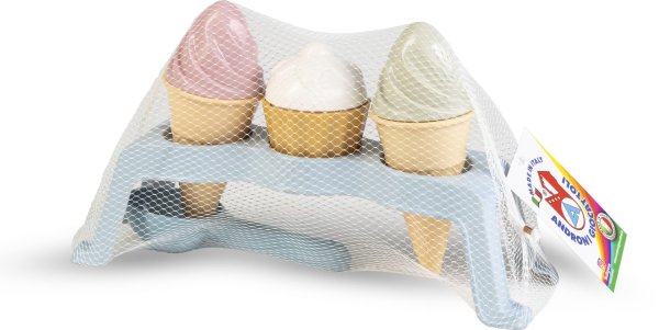 8dílná sada tvořítek na písek - zmrzlina ve stojánku. Vyrobeno v Itálii z kvalitních plastů. Obsahuje dva kornoutky se zmrzlinou, jedno tvořítko na dortík s dortíkem, kopečkovač na zmrzlinu a stojánek. Baleno v síťce o rozměrech 9,5 cm x 29 cm x 17 cm (š x d x v). Váha: 0,153 kg. Doporučený věk od 10 měsíců.