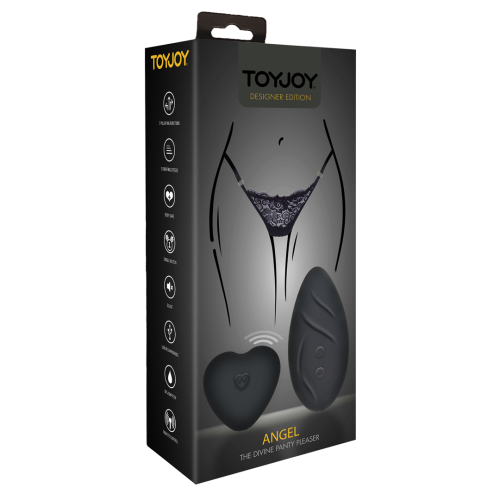 Angel je erotická sada pro ženy, která obsahuje sexy krajkové panty s ,,kapsičkou" a vibrátor, který je tvarově přizpůsoben ženskému klínu a přesně pasuje do ,,kapsičky" u kalhotek. Součástí je i dálkové ovládání ve tvaru srdíčka, kterým si nastavíte potřebný vibrační mód vibrátoru.