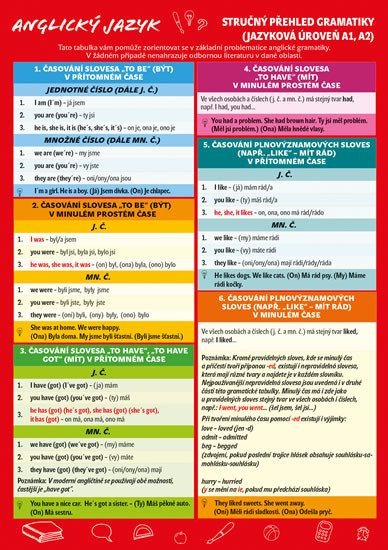 Laminátová skládačka určená především pro žáky základních a středních škol nabízí graficky přehledný a stručný souhrn základních pravidel anglické gramatiky. Obsahuje například časování pomocných i plnovýznamových sloves, tvoření otázek a záporů, používání určitých a neurčitých členů, stručné informace o všech slovních druzích, přehled základních nepravidelných sloves či vyjadřování časových údajů.