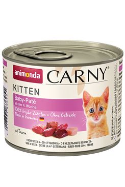 Konzervy Animonda Carny BABY PATÉ jsou vyrobeny výhradně z čerstvého masa. Obsahují speciální kombinaci antioxidantů, které chrání imunitní systém koček a posilují jejich obranyschopnost. Animonda Carny Kitten je vyvážené krmivo, které je přizpůsobeno požadavkům rostoucích koťat. Bez barviv a umělých konzervantů. Koťata milují konzervy Animonda CARNY KITTEN.