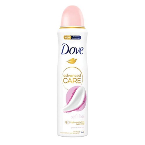 Dove Advanced Care Soft Feel je dámský antiperspirant ve spreji, který nabízí nejen účinnou 72hodinovou ochranu proti pocení, ale také výjimečnou péči o pokožku. Jeho složení bez alkoholu je obohaceno o ¼ hydratačního krému a speciální hydratační technologii, díky čemuž je mimořádně šetrný i k čerstvě oholené pokožce. Hebká květinová vůně s jemným nádechem dětského pudru přináší příjemný pocit čistoty a komfortu během celého dne.Tento produkt pochází od značky uvedené v programu Beauty Without Bunnies organizace People for the Ethical Treatment of Animals (PETA), který sdružuje značky deklarující, že jejich produkty nejsou testovány na zvířatech.