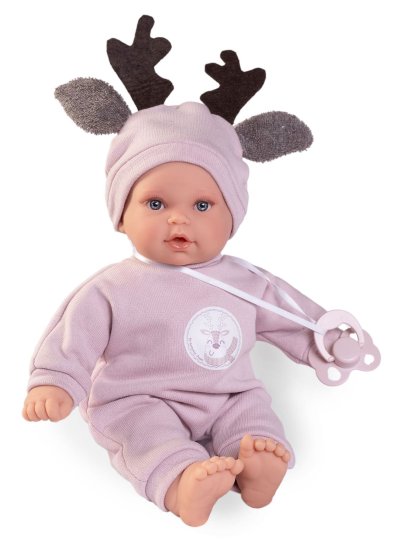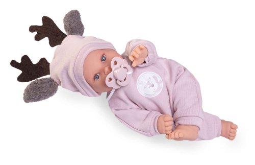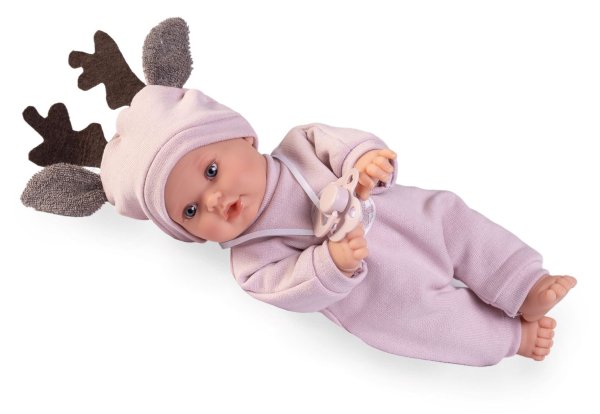 Plačící a mluvící, ručně vyrobená realistická španělská panenka, reagující na magnetický dudlík. Po vytažení dudlíku z úst vydává reálný zvuk plačícího dítěte, který lze utišit opět dudlíkem a říká „mama“, „papa“. Panenka má měkké látkové tělo, hlava a končetiny jsou vyrobené z kvalitního měkčeného vinylu. Oblečení některých panenek bylo vyrobeno z organické bavlny, která zaručuje výrobu z ručně sbírané, ekologicky bez chemického ošetření pěstované bavlny. Firma Antonio Juan klade velký důraz na ekologii a proto jako první využívá v tomto odvětví zmíněnou bavlnu. Velikost 27 cm. Baleno v dárkové krabici. Doporučený věk od 2 let. Součástí balení je 3 x knoflíková baterie LR44 s návodem na její výměnu. Baterie jsou spotřební zboží a proto jejich vybití není důvodem k reklamaci panenky.