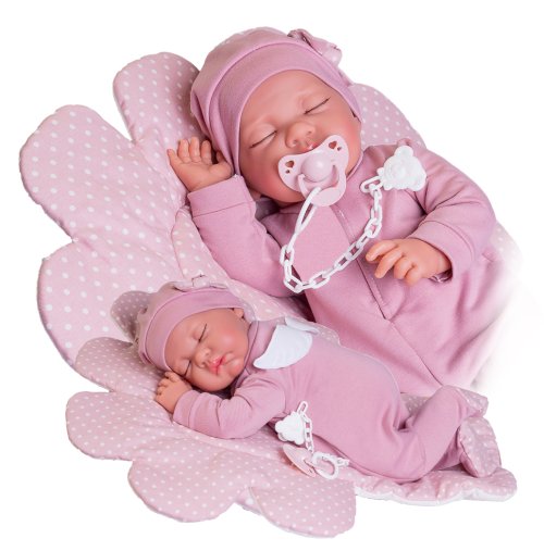 Spící, ručně vyrobená realistická španělská panenka - miminko s realistickými prvky v obličeji a na končetinách. Ruce a nohy jsou k tělu přichycené kloubem s možností polohování, což miminku umožňuje dát si ve spánku třeba ručičky za hlavu. Panenka má měkké látkové tělo, hlava a končetiny jsou vyrobené ze speciálního měkčeného vinylu, příjemného na dotek. Oblečení této panenky bylo vyrobeno z organické bavlny, která zaručuje výrobu z ručně sbírané, ekologicky bez chemického ošetření pěstované bavlny. Firma Antonio Juan klade velký důraz na ekologii a proto jako první využívá v tomto odvětví zmíněnou bavlnu. Velikost 42 cm. Baleno v dárkové krabici. Doporučený věk od 3 let.