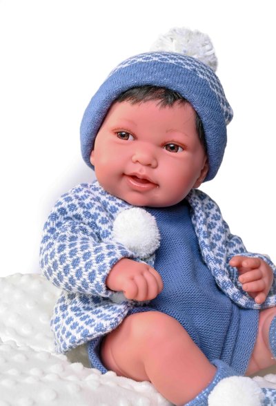 Ručně vyrobená realistická španělská panenka - miminko new born s celovinylovým tělem a realistickým vyobrazením různých miminkovských faldíků a detailů včetně pohlaví. Panenka je vyrobená ze speciálního měkčeného vinylu, velmi příjemného na dotek. Oblečení některých panenek bylo vyrobeno z organické bavlny, která zaručuje výrobu z ručně sbírané, ekologicky bez chemického ošetření pěstované bavlny. Firma Antonio Juan klade velký důraz na ekologii a proto jako první využívá v tomto odvětví zmíněnou bavlnu. Velikost 42 cm. Baleno v dárkové krabici. Doporučený věk od 3 let.