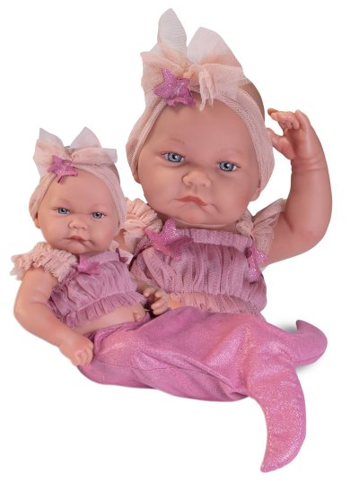 Ručně vyrobená realistická španělská panenka - miminko new born s celovinylovým tělem a realistickým vyobrazením různých miminkovských faldíků a detailů včetně pohlaví. Panenka je vyrobená ze speciálního měkčeného vinylu, velmi příjemného na dotek. Miminko lze koupat, ale je potřeba dát pozor, aby se nenamočily řasy. Odlepené řasy nejsou pak důvodem k reklamaci. Oblečení některých panenek bylo vyrobeno z organické bavlny, která zaručuje výrobu z ručně sbírané, ekologicky bez chemického ošetření pěstované bavlny. Firma Antonio Juan klade velký důraz na ekologii a proto jako první využívá v tomto odvětví zmíněnou bavlnu. Velikost 42 cm. Baleno v dárkové krabici. Doporučený věk od 3 let.