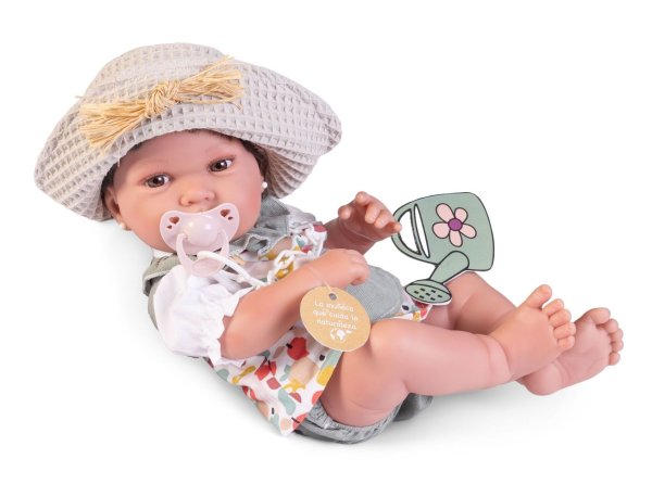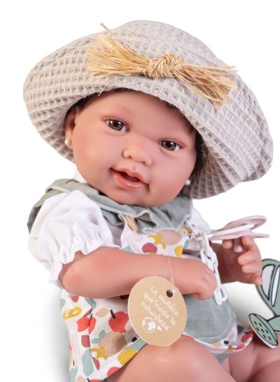 Ručně vyrobená realistická španělská panenka - miminko new born s celovinylovým tělem a realistickým vyobrazením různých miminkovských faldíků a detailů včetně pohlaví. Panenka je vyrobená ze speciálního měkčeného vinylu, velmi příjemného na dotek. Oblečení některých panenek bylo vyrobeno z organické bavlny, která zaručuje výrobu z ručně sbírané, ekologicky bez chemického ošetření pěstované bavlny. Firma Antonio Juan klade velký důraz na ekologii a proto jako první využívá v tomto odvětví zmíněnou bavlnu. Velikost 42 cm. Baleno v dárkové krabici. Doporučený věk od 3 let.