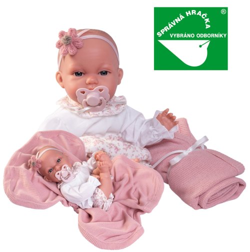 Ručně vyrobená realistická španělská panenka - miminko, se speciální pohybovou funkcí. Díky vnitřní opoře kostry těla, může dělat neobvyklé pohyby končetin, jako překřížit nožičky vleže, dát k sobě dlaně nebo zaujmat různé miminkovské polohy. Miminko má měkké látkové tělo, hlava a končetiny jsou vyrobené z kvalitního měkčeného vinylu. Oblečení některých panenek bylo vyrobeno z organické bavlny, která zaručuje výrobu z ručně sbírané, ekologicky bez chemického ošetření pěstované bavlny. Firma Antonio Juan klade velký důraz na ekologii a proto jako první využívá v tomto odvětví zmíněnou bavlnu. Velikost 34 cm. Baleno v dárkové krabici. Doporučený věk od 3 let.