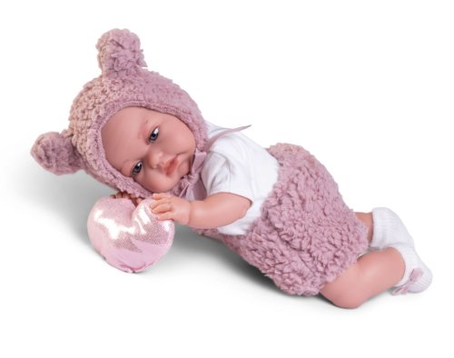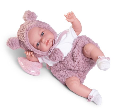 Ručně vyrobená realistická španělská panenka - miminko, se speciální pohybovou funkcí. Díky vnitřní opoře kostry těla, může dělat neobvyklé pohyby končetin, jako překřížit nožičky vleže, dát k sobě dlaně nebo zaujmat různé miminkovské polohy. Miminko má měkké látkové tělo, hlava a končetiny jsou vyrobené z kvalitního měkčeného vinylu. Oblečení některých panenek bylo vyrobeno z organické bavlny, která zaručuje výrobu z ručně sbírané, ekologicky bez chemického ošetření pěstované bavlny. Firma Antonio Juan klade velký důraz na ekologii a proto jako první využívá v tomto odvětví zmíněnou bavlnu. Velikost 34 cm. Baleno v dárkové krabici. Doporučený věk od 3 let.