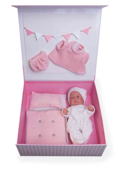Ručně vyrobená realistická španělská panenka - miminko new born s celovinylovým tělem a realistickým vyobrazením různých miminkovských faldíků a detailů včetně pohlaví. Panenka je vyrobená ze speciálního měkčeného vinylu, velmi příjemného na dotek. Miminko lze koupat. Oblečení některých panenek bylo vyrobeno z organické bavlny, která zaručuje výrobu z ručně sbírané, ekologicky bez chemického ošetření pěstované bavlny. Firma Antonio Juan klade velký důraz na ekologii a proto jako první využívá v tomto odvětví zmíněnou bavlnu. Velikost 26 cm. Baleno v dárkové krabici. Doporučený věk od 2 let.