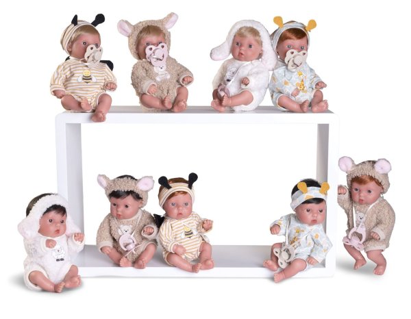 Ručně vyrobená realistická španělská panenka - miminko new born s celovinylovým tělem a realistickým vyobrazením různých miminkovských faldíků a detailů včetně pohlaví. Panenka je vyrobená ze speciálního měkčeného vinylu, velmi příjemného na dotek. Oblečení některých panenek bylo vyrobeno z organické bavlny, která zaručuje výrobu z ručně sbírané, ekologicky bez chemického ošetření pěstované bavlny. Firma Antonio Juan klade velký důraz na ekologii a proto jako první využívá v tomto odvětví zmíněnou bavlnu. Velikost 21 cm. Doporučený věk od 2 let.