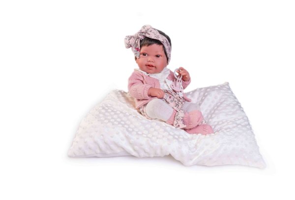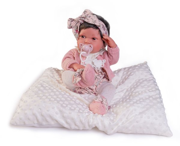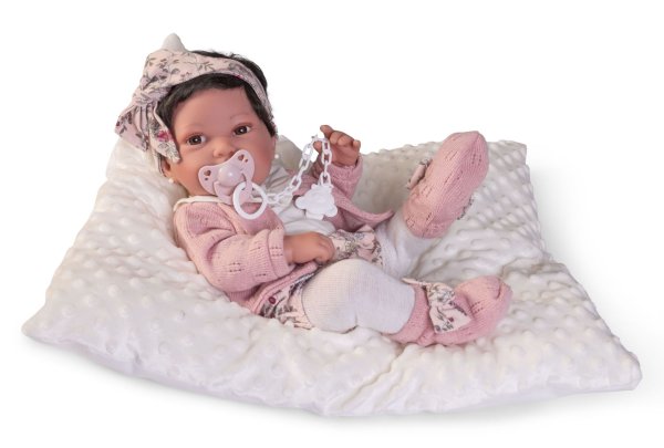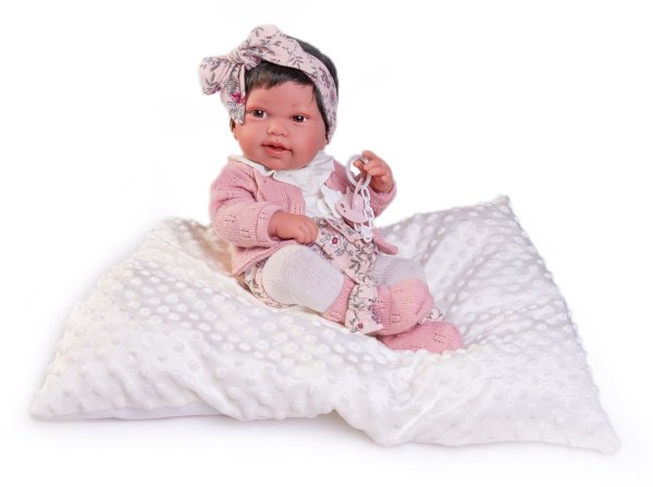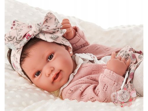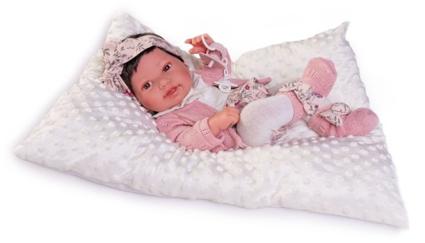 Ručně vyrobená realistická španělská panenka - miminko new born s celovinylovým tělem a realistickým vyobrazením různých miminkovských faldíků a detailů včetně pohlaví. Panenka je vyrobená ze speciálního měkčeného vinylu, velmi příjemného na dotek. Oblečení panenky bylo vyrobeno z organické bavlny, která zaručuje výrobu z ručně sbírané, ekologicky bez chemického ošetření pěstované bavlny. Firma Antonio Juan klade velký důraz na ekologii a proto jako první využívá v tomto odvětví zmíněnou bavlnu. Velikost 42 cm. Baleno v dárkové krabici. Doporučený věk od 3 let.