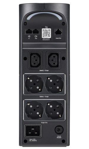 Věžový záložní zdroj o výkonu 1320 W má celkem 6 zásuvek, z nichž 3 jsou záložní baterie a přepěťová ochrana a 3 jsou pouze přepěťovou ochranou. Disponuje čtyřmi Schuko zásuvkami a dvěma IEC 320 C13 konektory. Pro snadné ovládání je vybaven LCD displejem s RGB osvětlením. Automatická regulace napětí (AVR) koriguje poklesy a rázy napětí na správnou úroveň. Potěší také přítomnost 2× USB a 1× USB-C, které poskytují napájení celkem až 15 W pro nabíjení mobilních zařízení. Ke správě jednotky slouží RJ-45 data port.