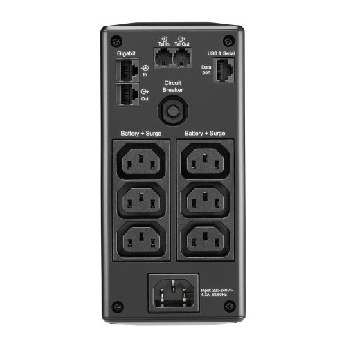VÝSTUP Kapacita výstupního výkonu [W]: 390 Kapacita výstupního výkonu [VA]: 650 Jmenovité výstupní napětí [V]: 230 Topologie: Line interaktivní Typ křivky: Iterační aproximace sinusového průběhu Výstupní přípojky: (6) IEC 320 C13 (Záložní provoz na baterie)